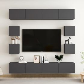 7 Piece TV Cabinet Set Gray Engineered Wood